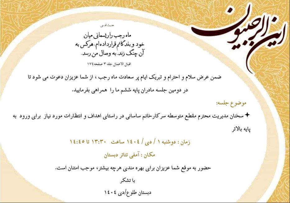 جلسه مادران پایه ی ششم ابتدایی دی ماه 1404