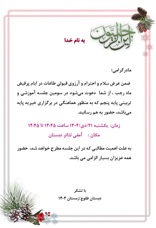 جلسه مادران پایه ی پنجم ابتدایی دی ماه 1404
