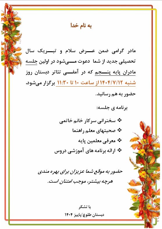 جلسه مادران پایه ی پنجم ابتدایی مهر ماه 1404